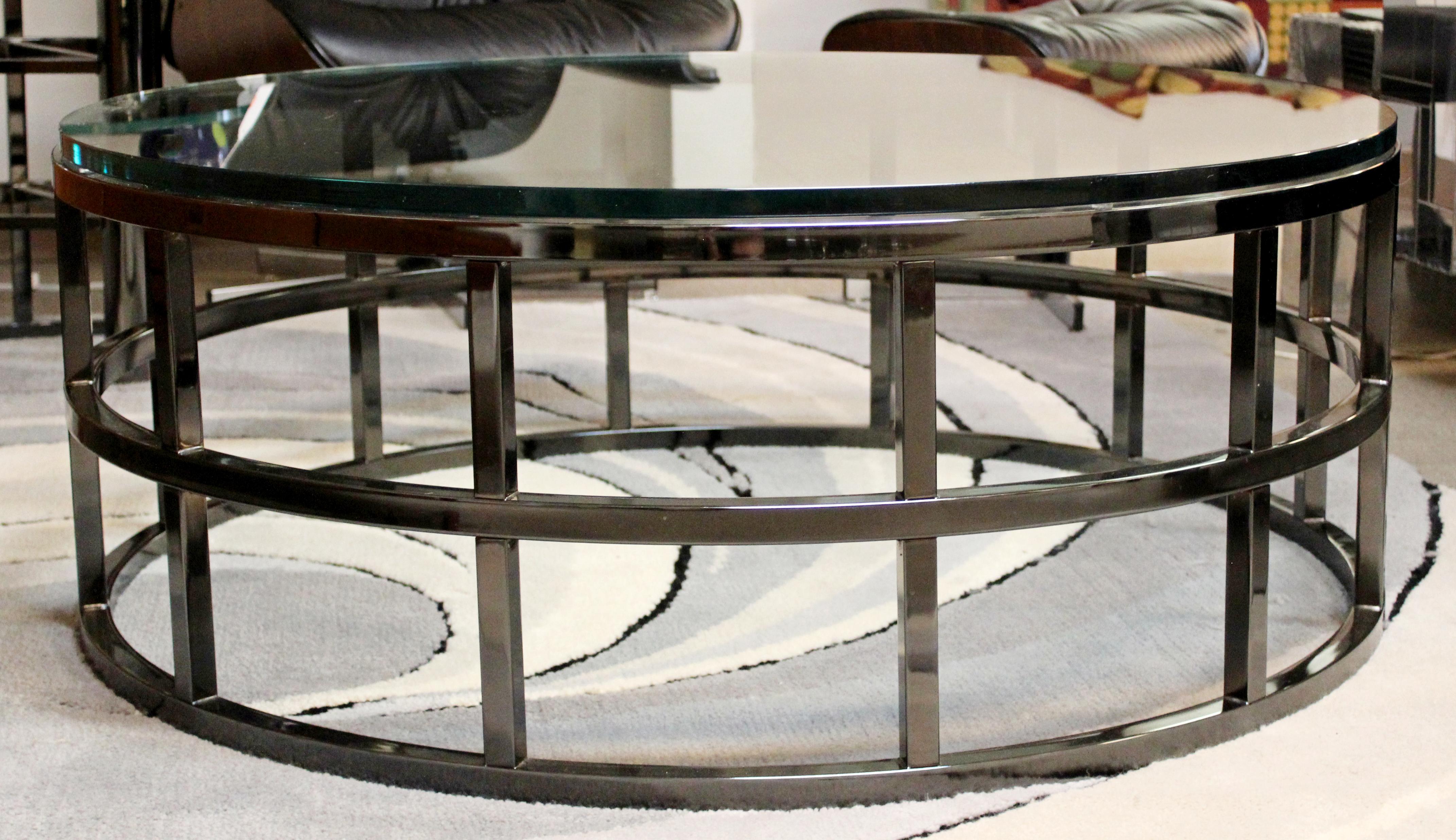 Adnet Coffee Table Round Glass Top Large Mid Century Mobler from www.midcenturymobler.com Looking for a good deal on glass coffee table? This round rattan table recommended by grove also features a glass top. An oval or round glass coffee table would be favorable for households with young children. A small round glass coffee table may be better suited for the corner of the rooms as you may want to add a living room table lamp on it to enhance the room lighting and larger tables. • this handmade, glass mosaic tile accented circular coffee table is a great way to break up the squares and rectangles in your home. Round coffee table with copper ring glass top finishes: 48 wide coffee table trifoil solid resin bronze base with round glass top 1292. The table features a large chrome base for added stability and top tempered glass.